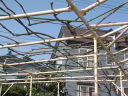 | 1/7 | 粗皮剥ぎ | 小春日和。隣の柿の木の粗皮をはぐ作業と一緒にブドウもやってみた。一部幹の太いところがふかふかになっていて、木が腐っているような部分があった。なぜなんだろう?剪定して、ある程度の枝を固めてパイプに縛りつけてある。 これから雪の季節だが、なにか寒肥を与えたほうがいいだろうか??(雪が溶けたとしたら) |