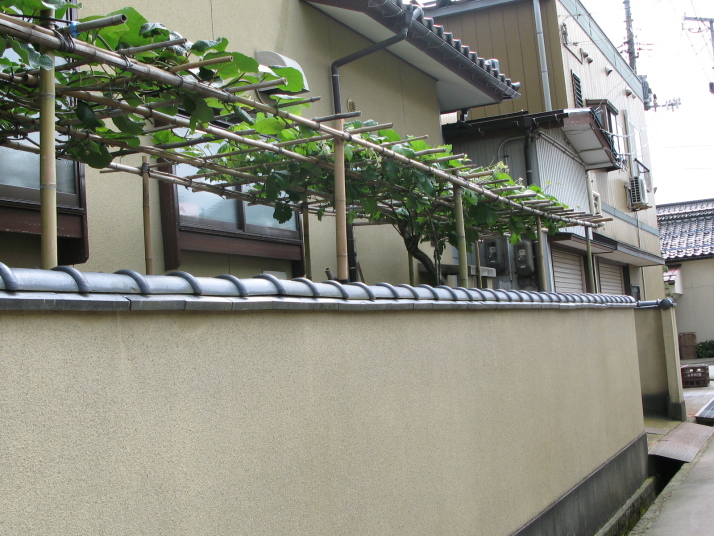 | 5/29 | 昨年は29日に最初のジベレリンをしている。少し早かったと書いているが、今年も咲き始めた。 本によると、巨峰は満開になってから、3日目、花房の一番下の部分の花が咲いて、 一番上が枯れて実になってきたころとある。6月1日ころから始めたい。 テラスに落ちる木漏れ日。この位の葉の重なりでいいのだろうか。 木の太さはいまいち細いが、生長の勢いはいいとおもおう。 |