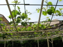 | 5/26 | 間違えて切り落としてしまった葉っぱ。きれいな色、やわらかい緑。 切り込み深く、虫、病気もなくいい形。 写真中は近くのぶどう、キューウィをつくっているお宅。 北向きの棚なので、我が家よりずっと生育は遅いが、とても手入れ行き届いて参考になる。 |